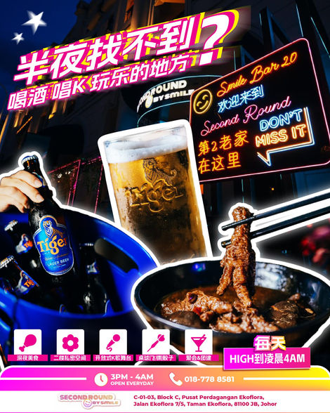 Second Round by Smile, under the Smile Group, is a popular late-night bar open until 4AM. With karaoke, darts, pool, and a laid-back vibe, it offers a fun and engaging space for drinks, music, and good times.